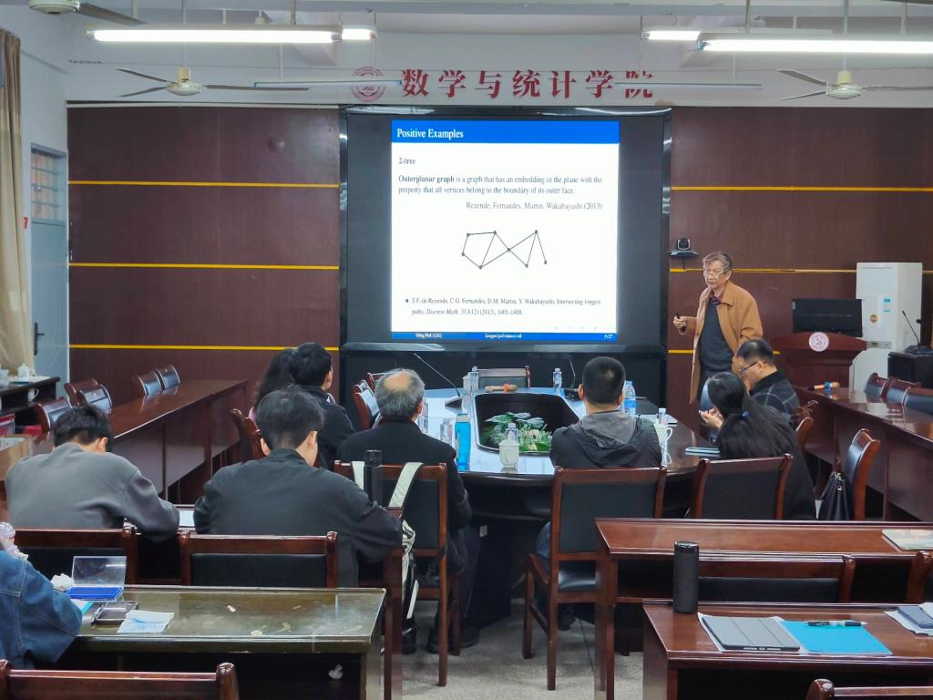 应我院邀请,12月28日上午,美国密西西比大学卫兵教授在砺志楼114作了题为《Bonds intersecting long paths in k-connected graphs》的报告。相关师生聆听了此次报告,报告由卢福良老师主持。