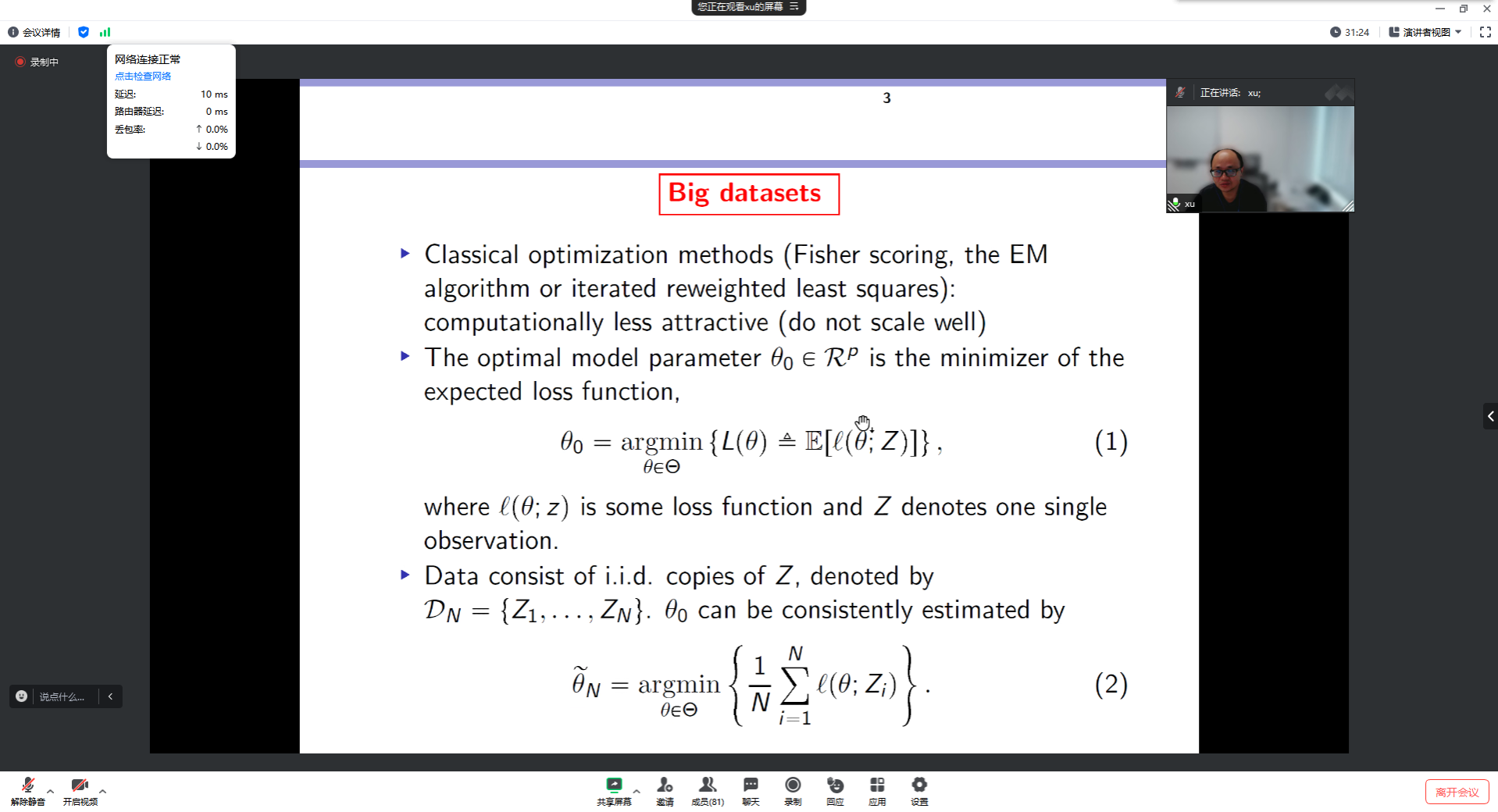 应我院邀请,4月14日上午,香港城市大学徐锦峰教授在腾讯会议作了题为《Learning Latent Features with Pairwise Penalties for Enhanced Low-Rank Matrix Completion》的报告。相关师生聆听了此次报告,报告由施建华老师主持。