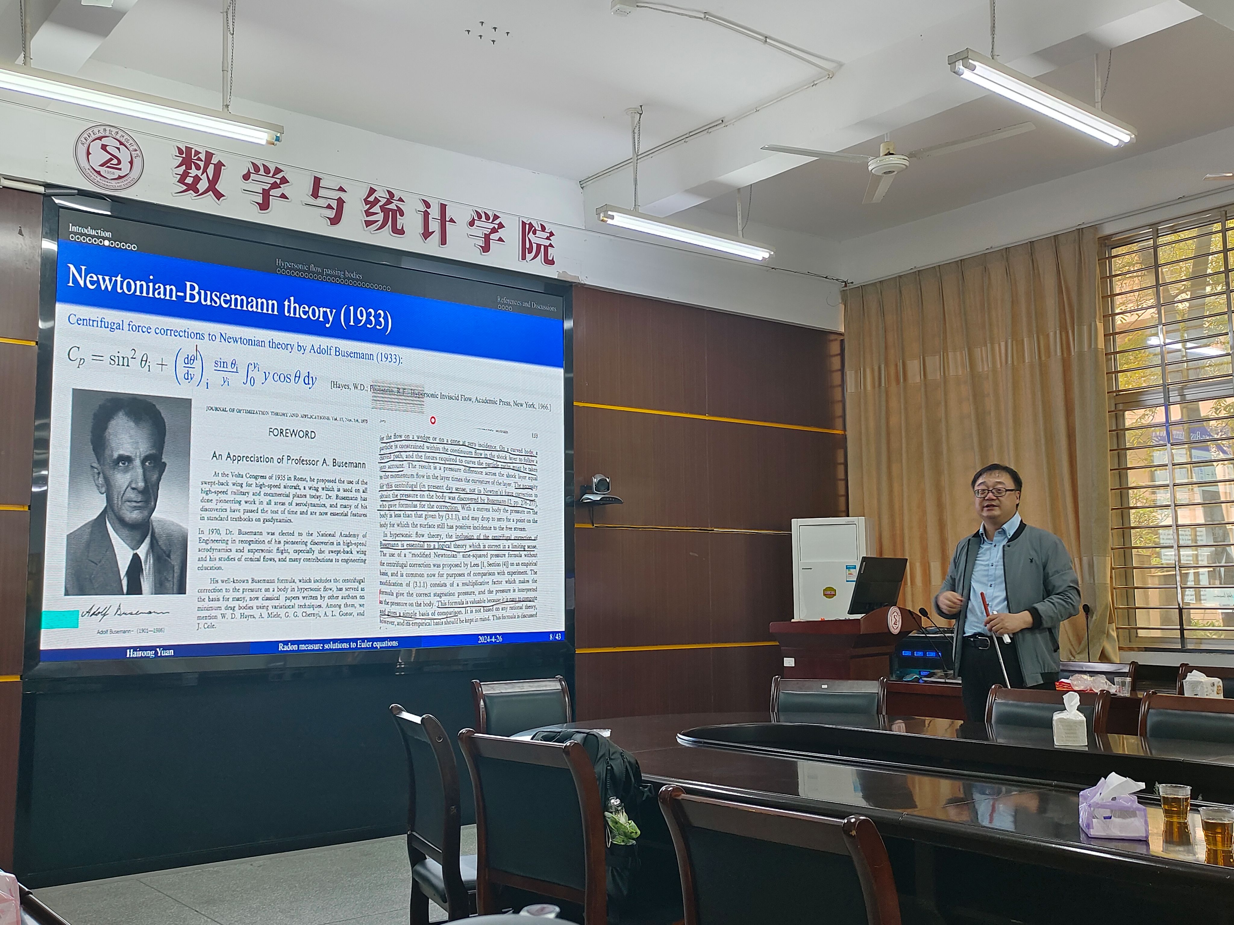 应我院邀请,4月26日早上,华东师范大学袁海荣教授在砺志楼114作了题为《可压缩欧拉方程组的Radon 测度解及其在高超声气动力学中的应用》的报告。相关师生聆听了此次报告,报告由林国平老师主持。