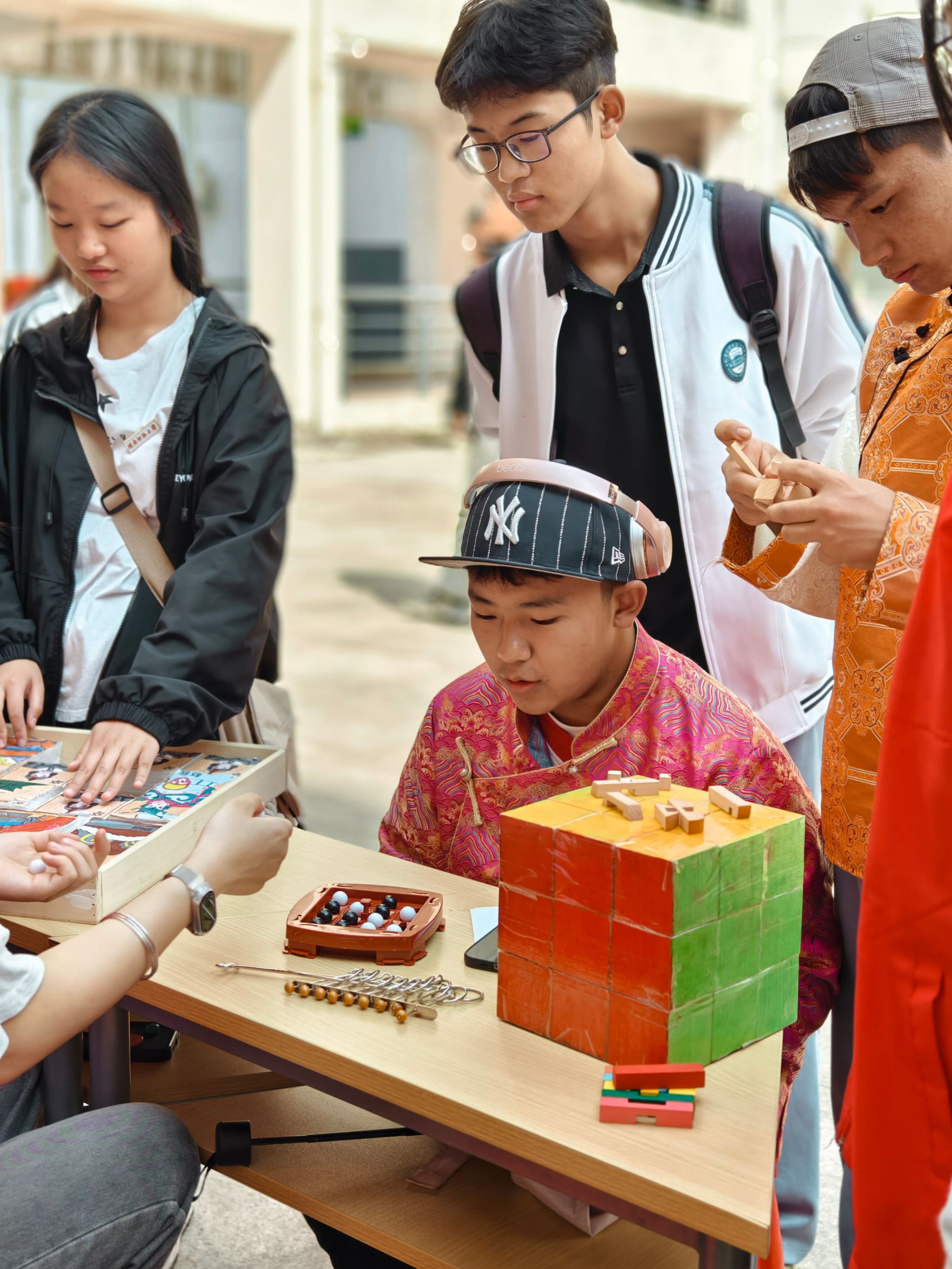 春日的闽南师大校园,数学文化长廊前人头攒动,文化互鉴的火花在数字密码中迸发。西藏班学子走进304永利集团第四届数学文化节,在志愿者的带领下开启数学文化探秘之旅,沉浸式体验数学魔术、益智教具等特色活动。活动过程中,西藏班学子在空地围成圆圈,跳起欢快的锅庄舞。旋转的裙摆与飘动的哈达交相辉映,志愿者们自发加入舞蹈行列,围观师生纷纷举起手机记录这动人的民族团结画面。