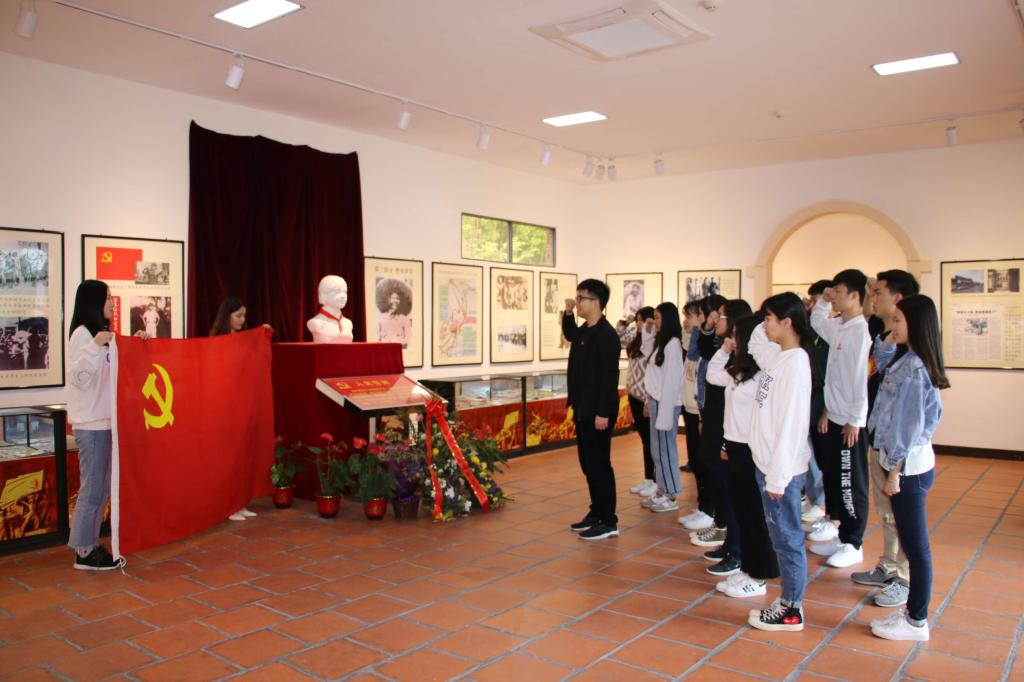 在李林事迹陈列馆,支部全体党员列队肃立默哀,向这位为民族解放事业奉献了生命的华侨女英烈李林致敬、行三鞠躬;面向鲜红的党旗,重温入党誓词,表达对革命先烈的缅怀之情,缅怀革命先烈的丰功伟绩。