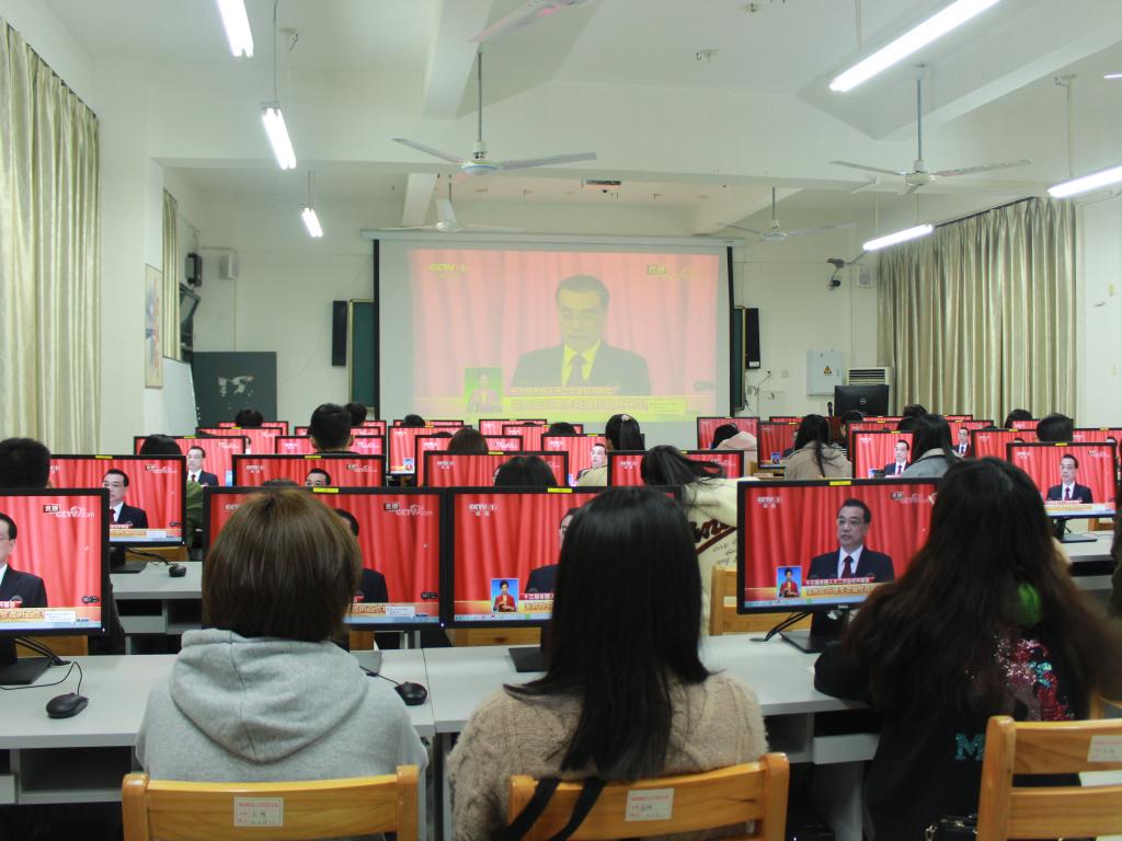 为进一步学习好两会精神,树牢“四个意识”,坚定“四个自信”,坚决做到“两个维护”,始终坚持正确政治方向和正确舆论导向,我院积极组织师生收听收看“两会”盛况。