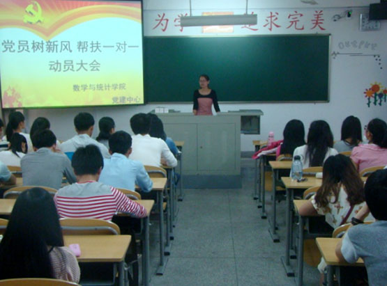 本学期以来,结合群众路线教育实践活动的开展,为了提高学生党员的党性意识和服务意识,树立“一个党员就是一面旗帜”的榜样形象,充分发挥党员的模范带头作用,数学与统计学院党总支积极倡导在学生党员中广泛开展主题为“党员树新风 帮扶一对一”的党员联系服务群众“结对子”活动,每位党员根据自己的专长选择具体的服务项目,新生则根据自身实际提出具体的辅导需求,学院党总支将两者进行有效匹配,把研究生党员和本科生高年级党员与13级新生“结对子”,就考研问题、学习问题、人际交往、就业指导、心理疏导等进行有针对性的谈心交流服务,并结合实际制定了《学生党员联系群众“结对子”实施办法》,要求每位党员结对13级2-3名同学,每周至少一次通过多种形式对新生进行所需专项的辅导,新生根据党员辅导实际做好《党员“结对子”服务登记卡》填写,学院成立由院党总支秘书、团委副书记、辅导员等组成的督导组,定期对活动开展情况进行监督指导。学期末,将在广泛听取辅导同学评议意见的基础上,结合服务登记卡的记录情况和新生辅导心得体会等,对党员进行考核,对表现突出的党员进行适当表彰,在学生党员中树立先进典型,营造“树先进、学先进、争先进”的良好氛围。据悉,此次活动共计44名学生党员参与,共结对辅导107名新生。