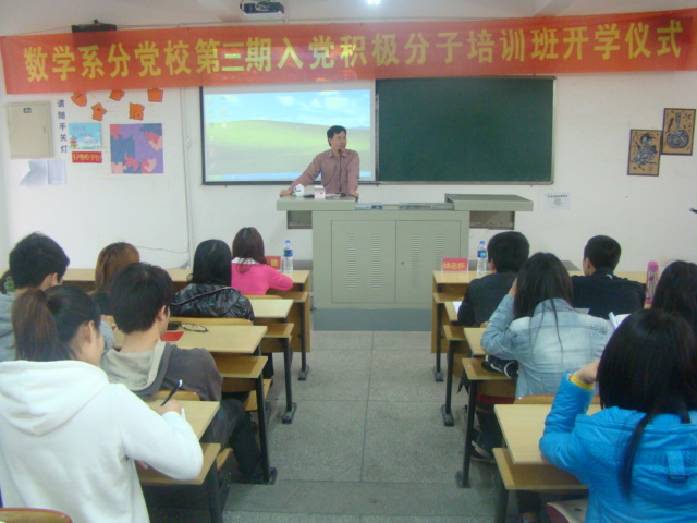 数学系分党校第三期入党积极分子培训班开学仪式在砺志226召开,系党总支徐志怀书记莅临仪式现场,仪式由系党总支秘书林晓主持。