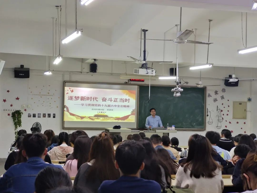 5月15日晚上,新闻传播学院党委副书记陈建漳于砺志楼130为我院入党积极分子开展以《逐梦新时代,奋斗正当时》为主题的专题党课。