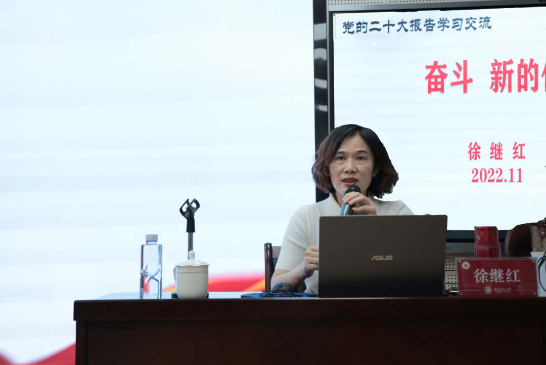 为深入学习贯彻党的二十大精神,筑牢理想之基,厚植爱国情怀,11月19日下午,我院分党校第二期正式党员培训班第二课于砺志楼131教室举行,校党委宣传部徐继红部长应邀为我院正式党员讲授以《奋斗 新的伟业》为题的专题党课。