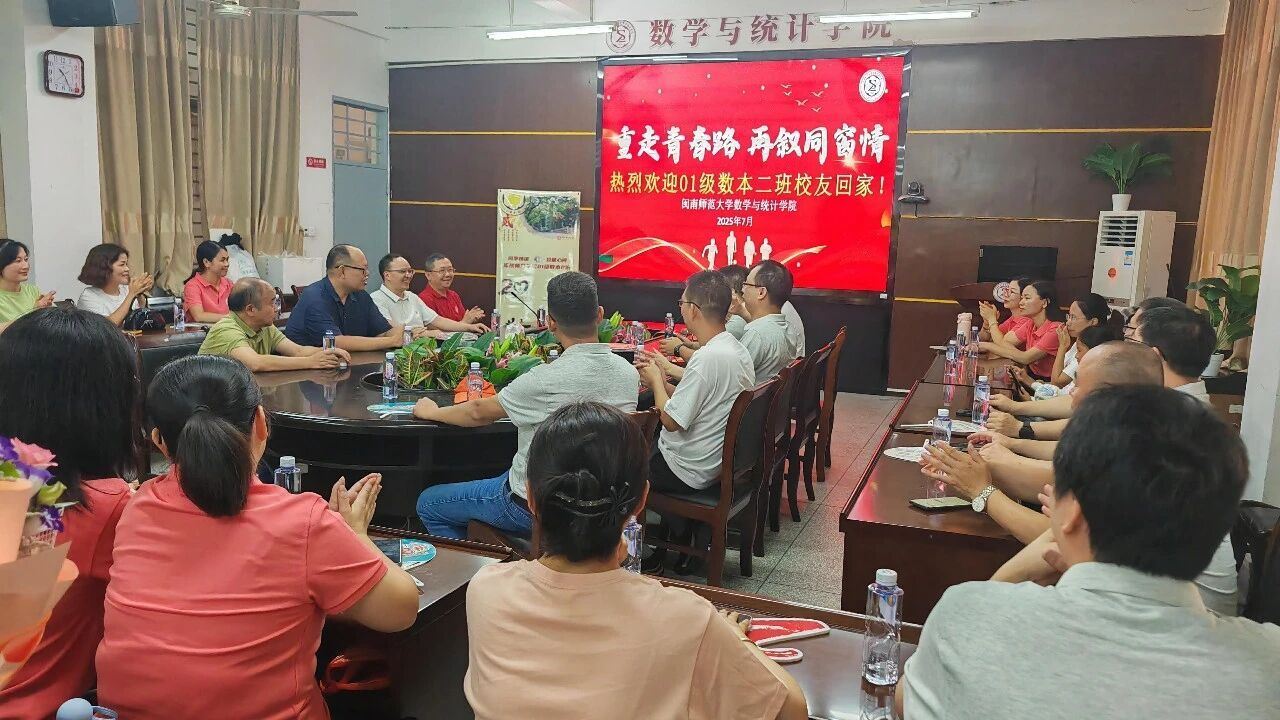 林贵东与校友们开了一堂“班会课”,深情回忆与2001级数本二班校友共度的青春岁月,表示师生情谊是永恒不变的根系。他提出三点期许,一是校友是母校最宝贵的财富,期待常回“娘家”看看;二是发挥校友力量助力招生就业,为学弟学妹提供优质教育资源;三是祝愿所有校友身心健康、家庭幸福,期待三十周年再相聚。最后特别强调,2001级数本二班这个共同记忆是永远的精神纽带。
