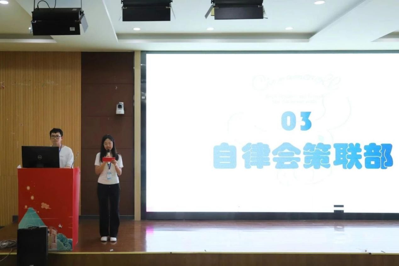 自律会策联部代表向与会人员介绍了星级宿舍评定和学风宿舍评定的相关细则,希望舍长们“以身作则,全力以赴”,发挥好带头作用,引领大家共建文明宿舍。