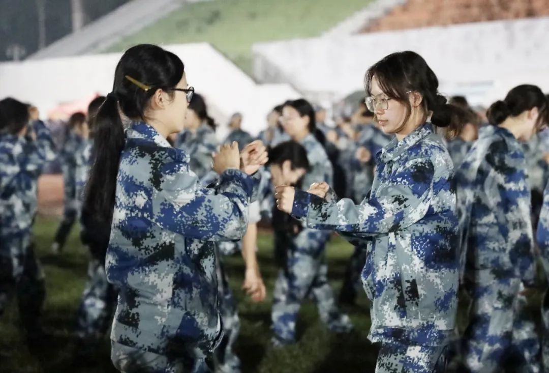 军体拳,以其刚劲有力的动作和实战性强的特点,成为军训中的一项重要训练内容。练习开始,教官逐一讲解军体拳的基本动作和要领,从拳法、腿法到身法、步法,每一个细节都力求精准到位。在教官的示范下,同学们开始模仿练习。他们或出拳如风,拳风呼啸;或踢腿如鞭,势大力沉。汗水沿着脸颊滑落,浸湿了衣襟,但同学们的眼神中却透露出坚定与执着。