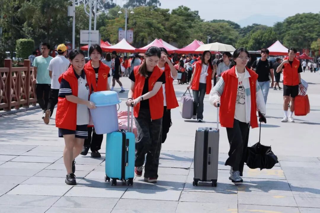 志愿者的身影,早早锚定在报到点。晴光正好,柔风不燥,如志愿者们的迎新姿态,热情似火,又耐心似水。他们于人潮中搭起安心的桥,让奔赴的路不再孤单与无助。他们以身作则,提供帮助,用实际行动践行着责任与担当。新生们一入校,便能与这抹暖心红撞个满怀。
