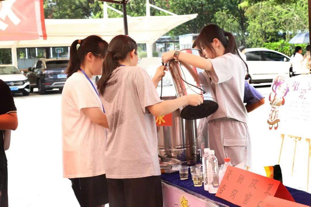 微风带着初秋的清爽拂过校园,数学与统计学院的老师们和志愿者们早已提前到位,在各自的岗位上整理好物资、确认好流程,静等候新生的身影。