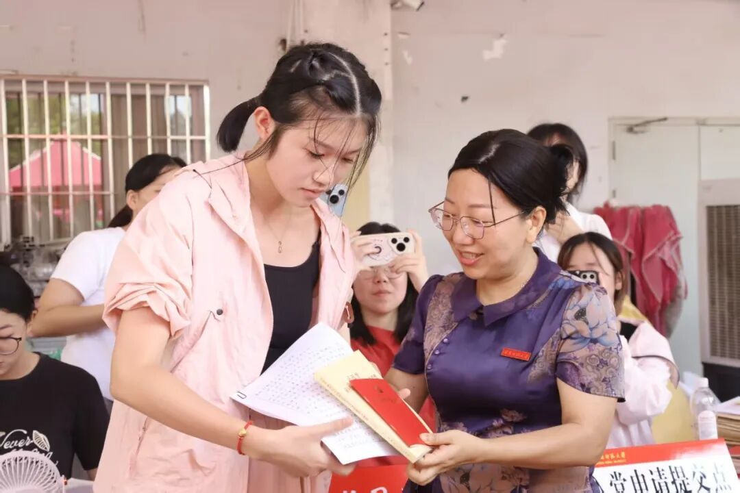 学院还在报道点前设置新生递交入党申请书环节、设立争做入党积极分子签名墙,激发新同学树立崇高的政治理想,积极向党组织靠拢。