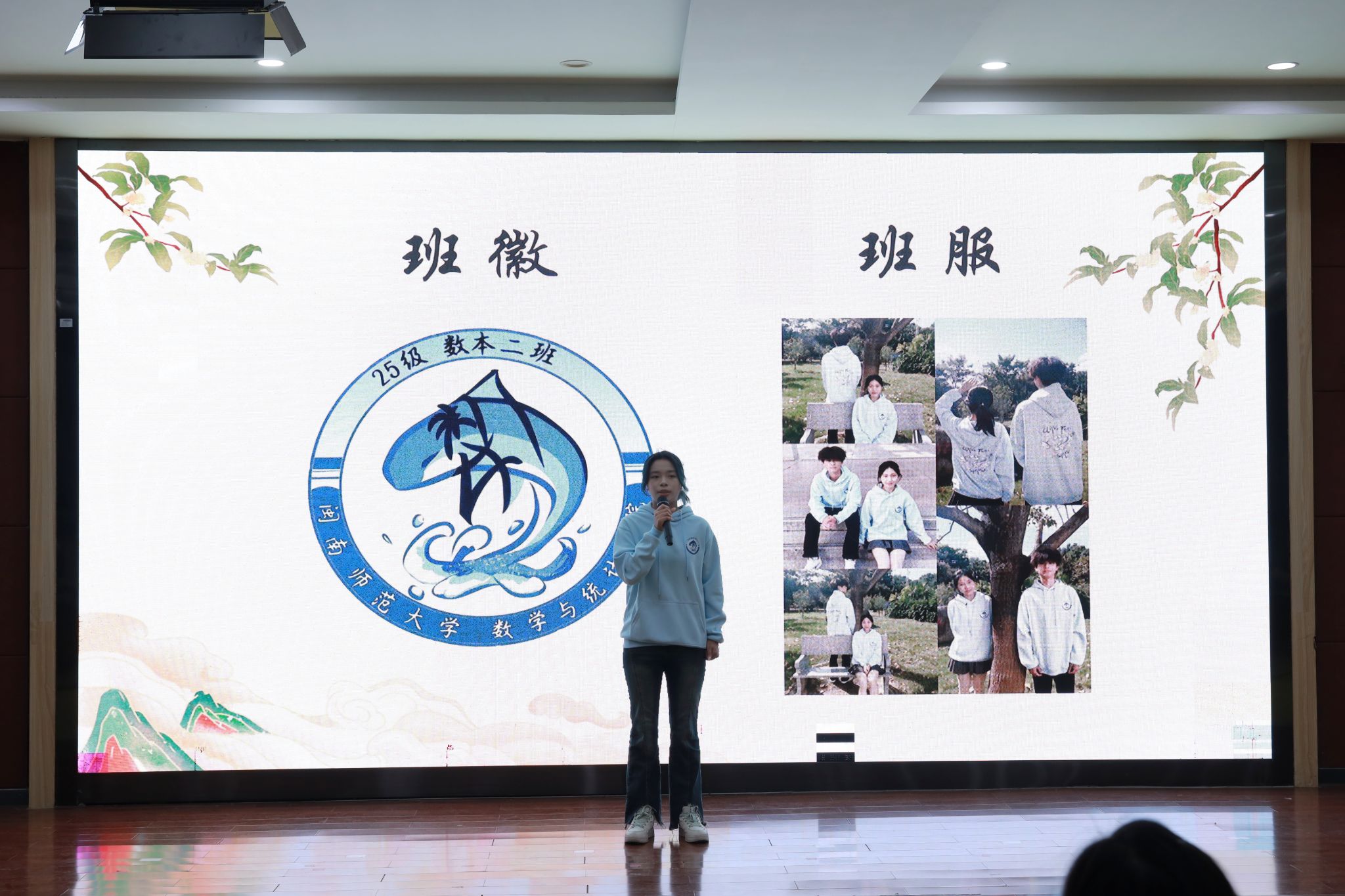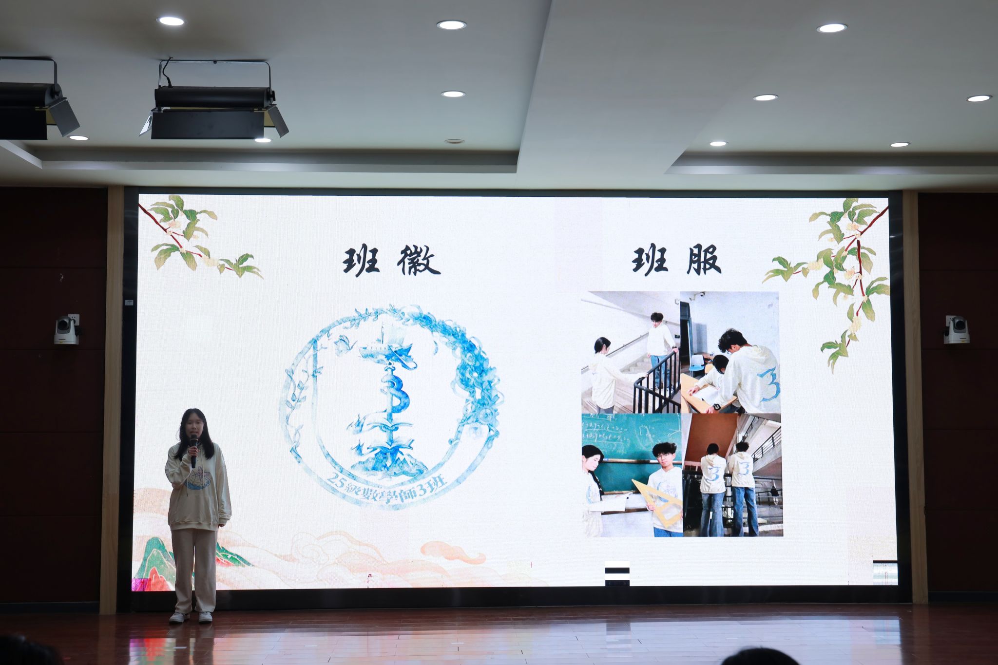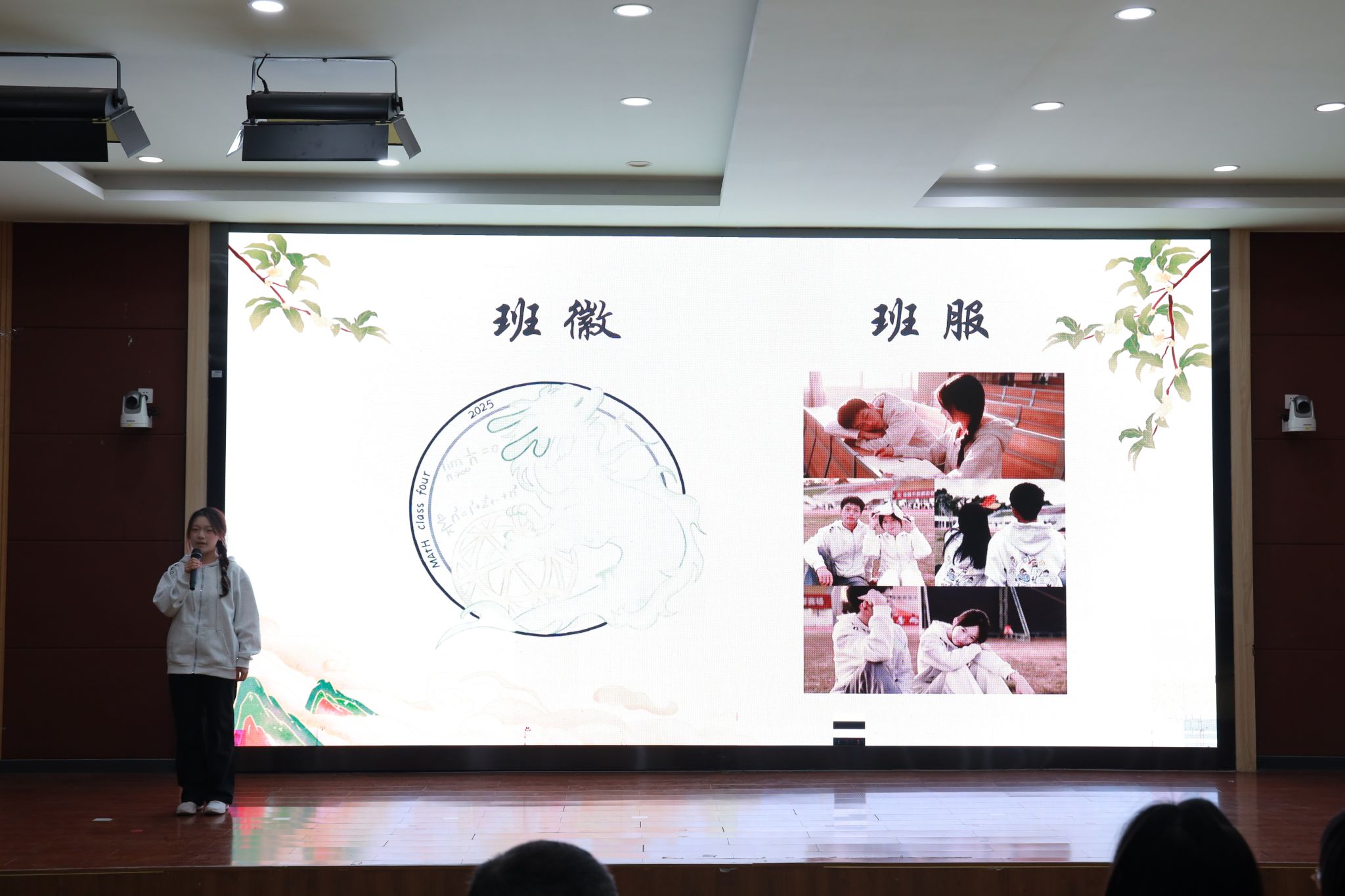胡海智老师在展示环节伊始发表致辞,瞬间点燃现场气氛。他给予了同学们前期精心筹备的充分肯定,并表达了对本次活动的殷切期望。他表示,班级形象是班级凝聚力与对外展示的窗口。每一项创意都凝聚着同学们的智慧,每一份付出都承载着集体的荣誉。最后,他勉励大家以饱满的热情投入展示,将筹备过程中的专注与努力,转化为现场的自信与光彩,在接下来的环节中充分展现班级风貌,绽放青春活力。