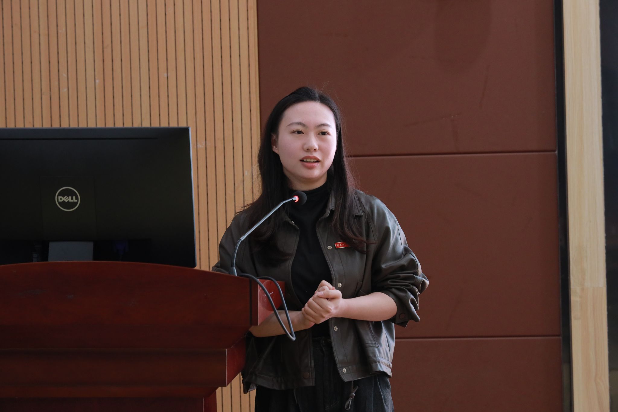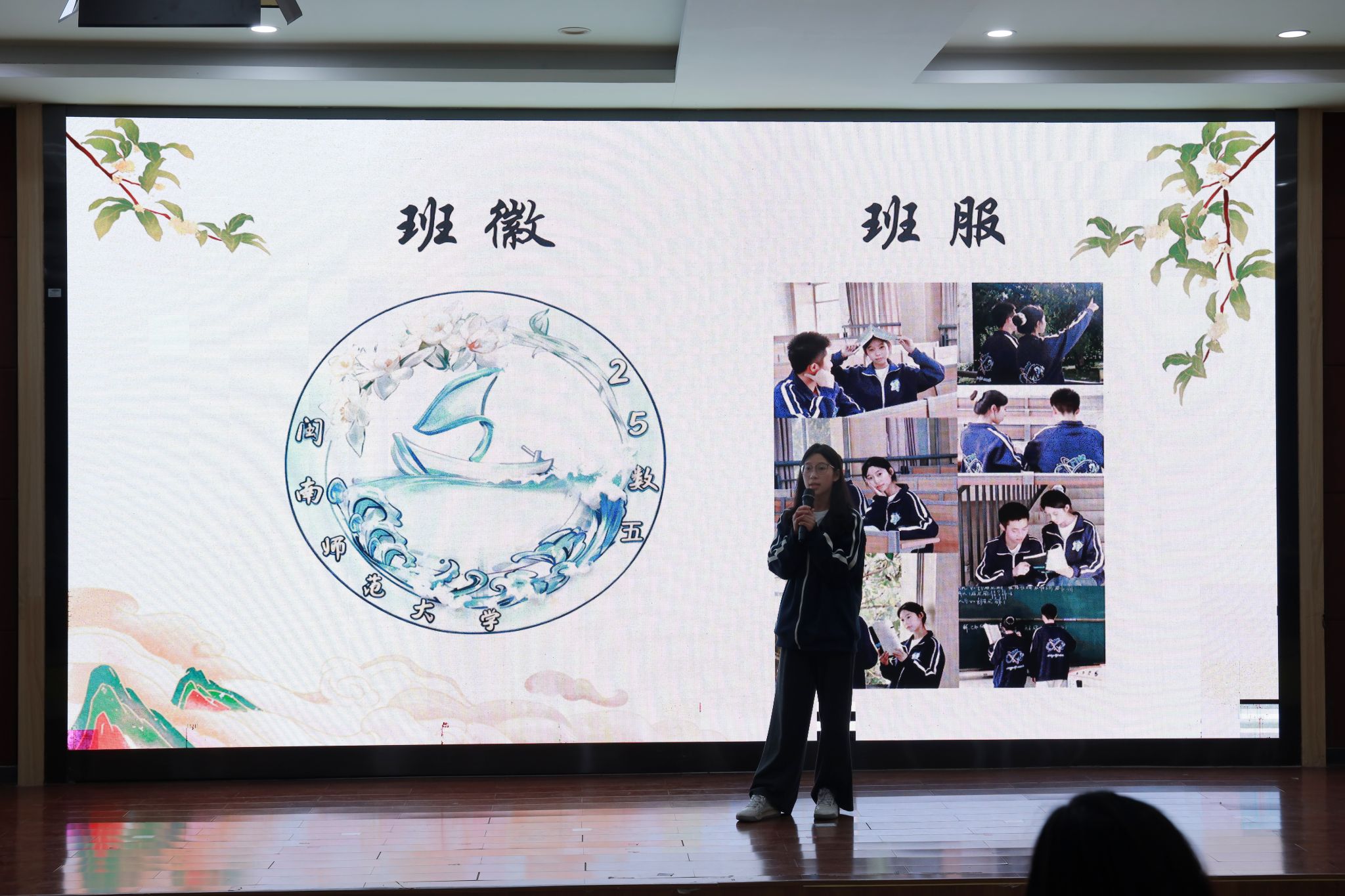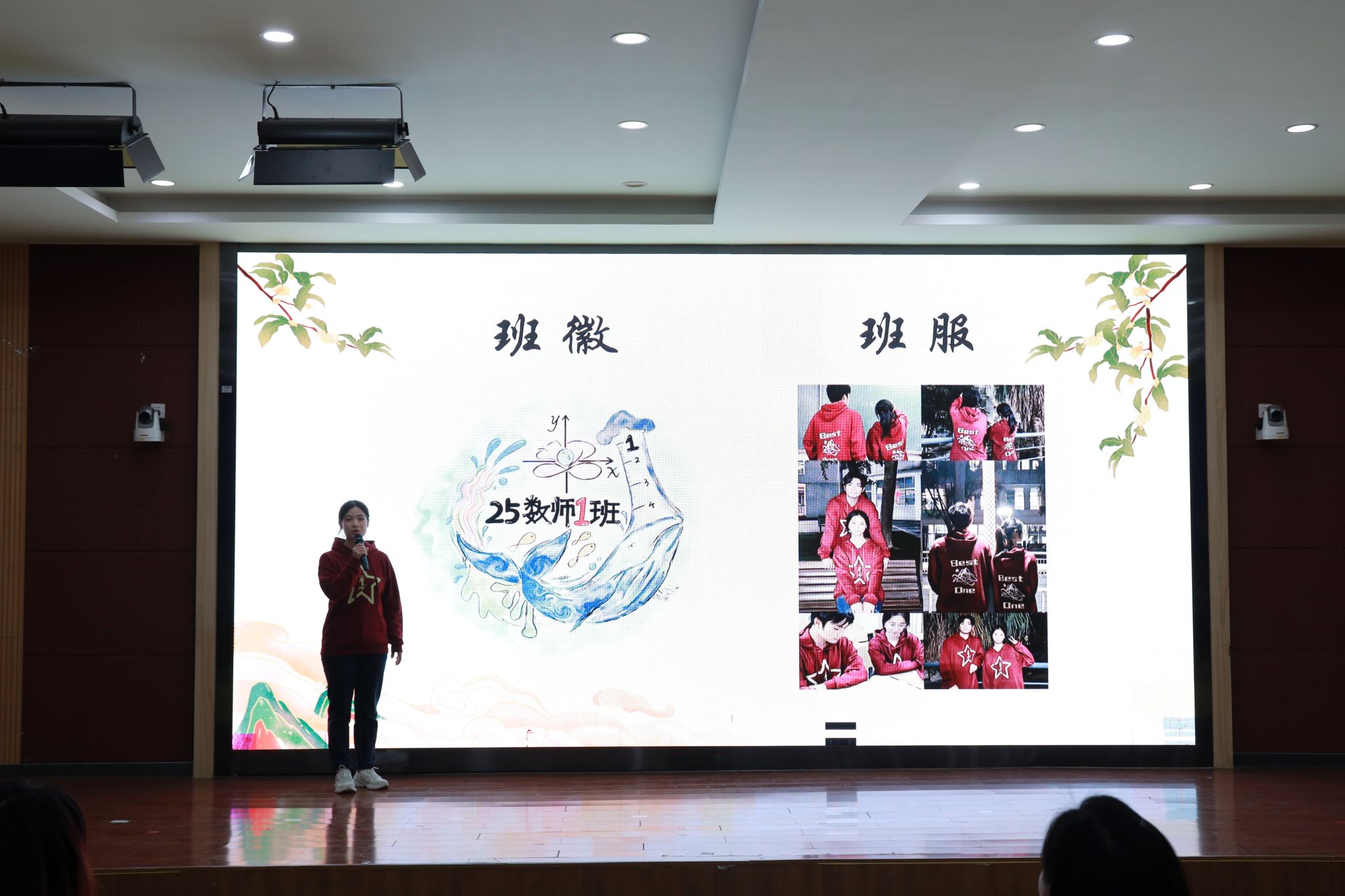展示环节圆满结束后,校学生会及学生社团发展中心指导老师许雯婷老师作总结点评。许老师充分肯定了各班的优异表现,她指出,动人的视频、精巧的班徽班服设计以及充满激情的解说,无不凝聚着同学们的智慧与心血,也赢得了现场热烈的掌声。她鼓励大家将这份创造力与团队精神转化为持续的动力,在未来的道路上继续闪耀,再创佳绩。
