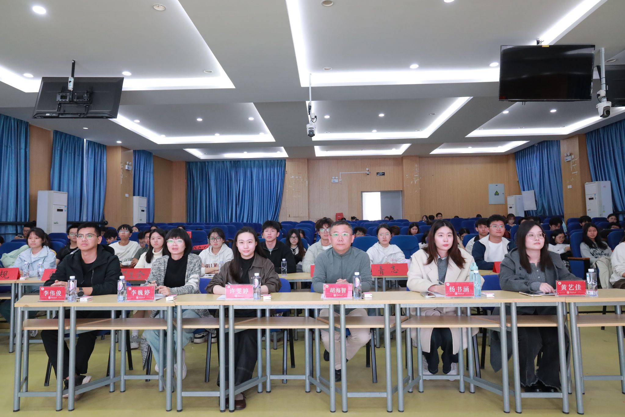本次活动特邀数统学院党委副书记胡海智老师、校学生会及学生社团发展中心指导老师许雯婷老师、文学院2023级辅导员杨书涵老师、数统学院2025级辅导员李伟俊老师、李巍婷老师、数统学院2024级辅导员黄艺佳老师,以及各大学生组织骨干和班级代表共同出席。师生在光影交错中共同感受家国情怀与青春力量的澎湃交响。