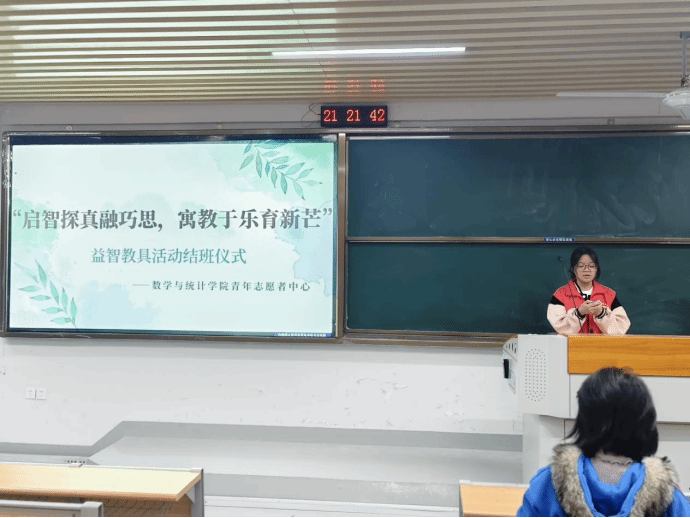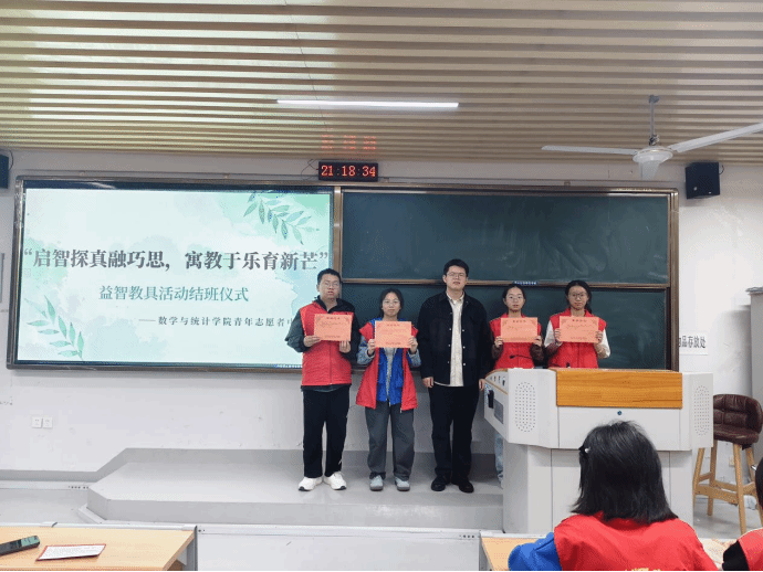 12月20日,数学与统计学院青年志愿者中心在砺志224举办益智教具活动结班仪式,我院青年志愿者中心指导老师朱旭泽出席本次活动。
