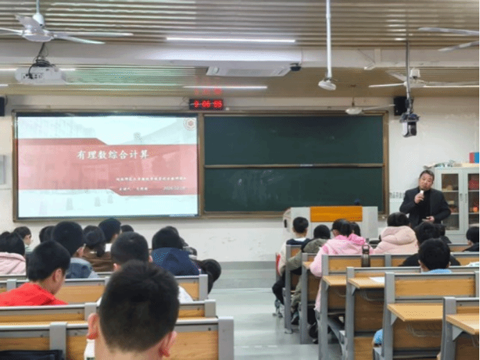 林国平老师讲解专题《数与代数》。林老师首先妙用生活中的实例生动阐释了方程的基本概念,接着,林老师提出和差倍、牛吃草等经典问题,引导同学们将方程作为解题工具,灵活运用于具体问题之中。在分析过程中,林老师还设置多个小问题鼓励同学们积极思考并主动发言。整堂课下来,同学们的代数思维能力得到了很大的提升。
