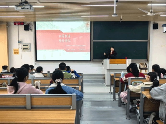 黄晓丽老师为同学们讲授《初等数论:整除特征》,从质数,合数等基本概念入手,系统讲解各类数字的整除判定法则。黄老师借助典型例题,引导同学们掌握快速判断的方法,理解背后的数学原理,从而夯实数论基础,提高逻辑推理能力;同时,黄老师那幽默风趣的语言和清楚透彻的分析,有效激发了同学们的学习兴趣与求知欲。