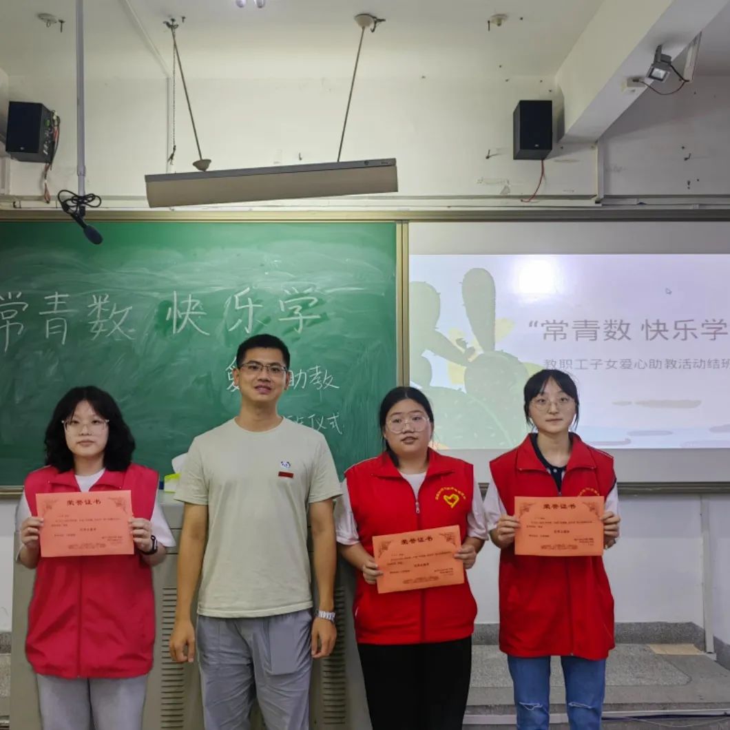 活动以爱心助教为主,益智教具为辅,旨在通过这样的方式拓宽教职工子女在不同领域的知识面,促使他们全方面成长,同时在无形之中提高爱心助教老师的教学素养,开展多元化教学,贯彻和落实“寓教于乐”的教学理念。2022年6月17日,我院于砺志225举行了本学期 “常青数,快乐学”爱心助教活动结班仪式,数学与统计学院李伟俊老师与爱心助教基地老师及学生共同参加了此次结班仪式。
