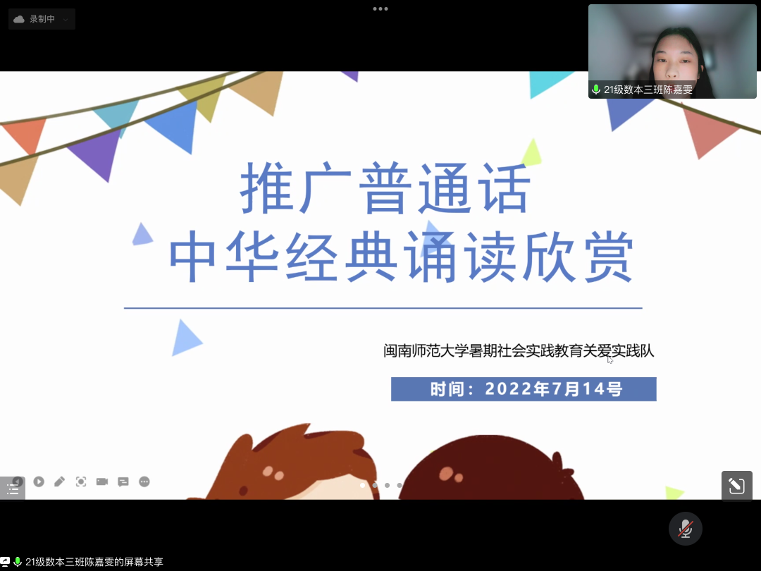 2022年7月14日,学院暑期社会实践教育关爱实践团面向漳浦一中、绥安中学、龙湖中学部分八、九年级学生们开展了第二天的线上实践活动。实践团队共分为四组,组织开展了四堂线上课程。