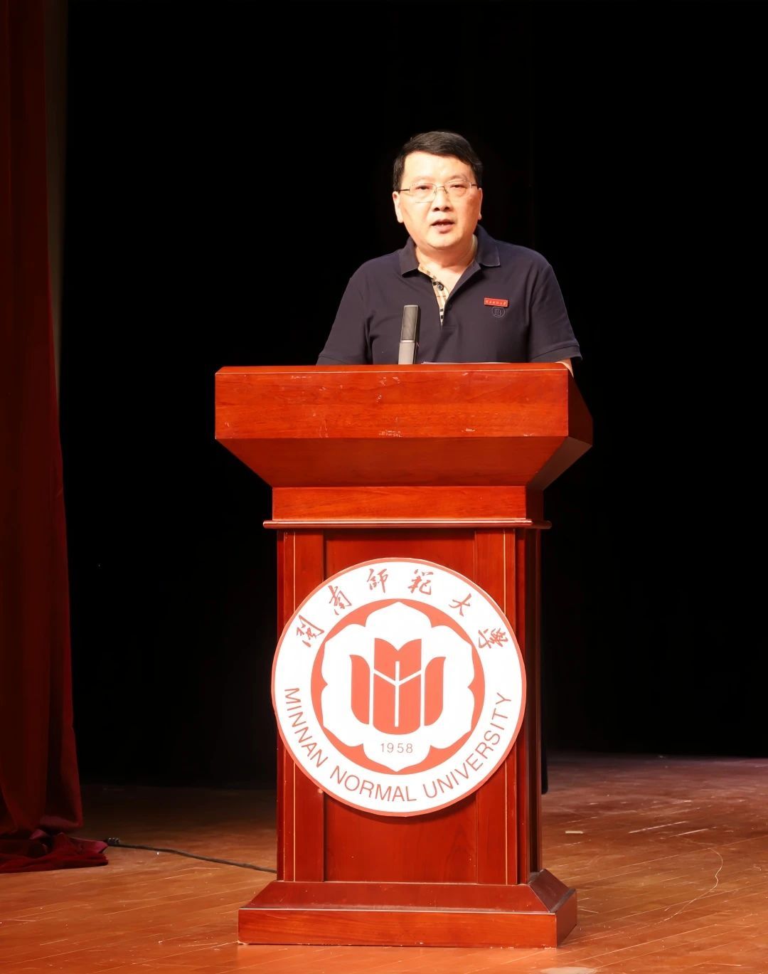 2024级本科生何小可作为新生代表发言。首先,她为学院提供这个舞台表示衷心感谢。同时祝贺各位新生,能在闽师相遇,带着沉淀,怀揣希望,踏入新的学府。她表示对校园充满好奇,期待校园生活,并会在接下来的学习生活中践行梦想。她祝愿24级新生能够勇敢面对挑战,相信大家在未来的大学生活能够创造属于自己的一番天地。