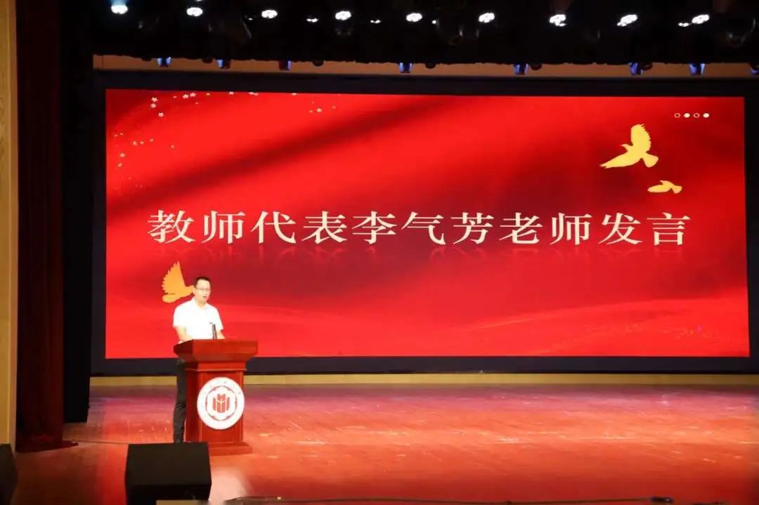 学院李气芳老师作为教师代表发言,他表示在充满希望和收获的季节,欢迎24级新生加入数统学院,强调了大学拥有更多的自由时间,但这也代表着拥有更多责任。合理指定目标,细化目标是他给予新生的学习建议。同时,李老师提出了以下三个希望:迈出舒适区;新的尝试;迎接挑战,奋斗是青春最好的诠释,最后李老师祝愿新生们在蕴含着许多机遇与挑战的全新旅程中能够收获成长的快乐。