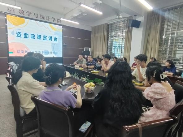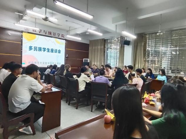 适逢中秋国庆假期,为关心了解各民族学生的学习生活情况,也使相关学生深入了解资助相关政策,加强学院师生沟通交流,数学与统计学院于10月5日下午在砺志楼114召开假期留校多民族学生座谈会及资助政策宣讲会。学院党委副书记胡海智老师、22级辅导员石伟琦老师、23级辅导员朱旭泽老师与各民族学生代表参加会议,本次座谈会由胡海智老师主持。
