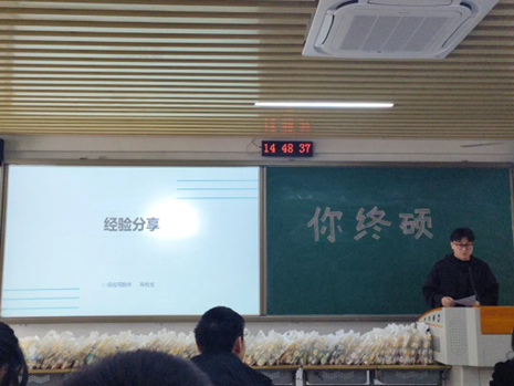 随后,两位学长学姐上台分享了他们的经验和故事。他们谈到了自己的备考经历,包括如何选择报考学校和专业,如何制定学习计划,如何处理备考中的困难和挫折等。他们的分享让在座的同学们深受启发,也增加了大家考研的信心和动力。