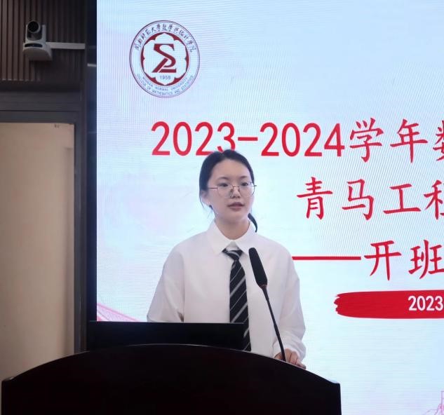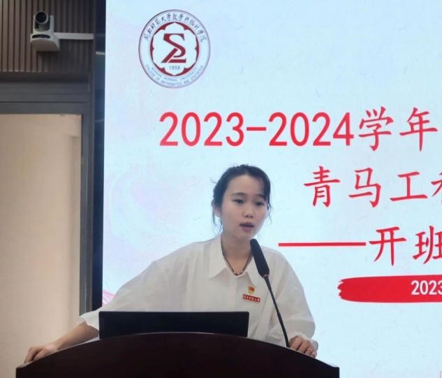 开班式上,学生代表杨静怡表示:作为青年学生,应当书写属于自己青春的光芒,争做有理想、敢担当、能吃苦、肯奋斗的优秀学生干部,克服重重困难,勇攀时代高峰。杨静怡同学呼吁在本次青马工程培训的过程中,各学员们能够遵守好培训班的制度安排,认真上好每一堂课,在广大学生中起到良好的先锋模范作用,争取在未来的日子里为学院的建设和发展贡献自己的力量。