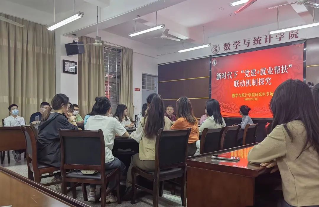 为推动学习贯彻习近平新时代中国特色社会主义思想主题教育走深走实,5月9日下午,数学与统计学院在砺志114开展“新时代下‘党建+就业帮扶’联动机制探究”主题教育研究生就业工作调研会议。学院党委书记陈晶莹、党委副书记胡海智出席,研究生辅导员郑珊以及2023届研究生毕业生代表参加会议,会议由胡海智副书记主持。