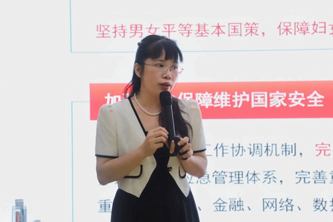 课上,许晓玲教授以二十大报告中关于依法治国的内容开篇,围绕“二十大中关于‘法治’的论述”、“二十大专章进行‘法治’的部署”以及“法治轨道上的我们”展开讲述。许晓玲指出,法治作为治国理政的一种方式,为全面建设社会主义现代化国家提供基本保障;在习近平新时代中国特色社会主义思想引导下,全面依法治国总体格局已基本形成;党纪学习教育不仅是从严治党的应有之义,也是全面推进依法治国和深入推进法治教育的内在要求。她强调,要将党纪学习教育系统融入法治教育中,提升全体师生党员法治思维素养和依法依规办事的能力水平,更好地服务于在法治轨道上全面建设社会主义现代化国家的需要。