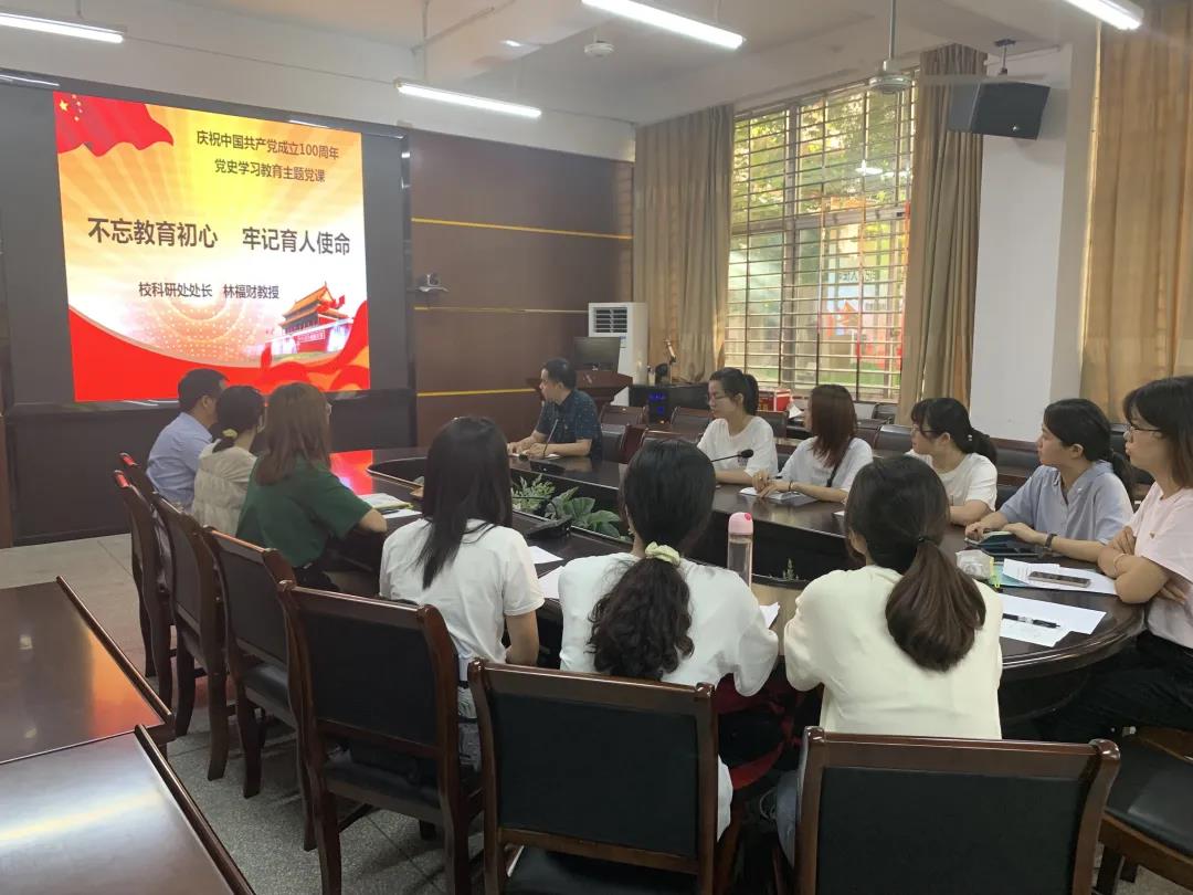6月11日下午,我院研究生第二党支部于砺志楼114召开支部大会,支部大会由党支部书记李气芳老师主持。会上特别邀请校科研处处长林福财教授给支部党员讲授了以“不忘教育初心 牢记育人使命”为主题的党课。