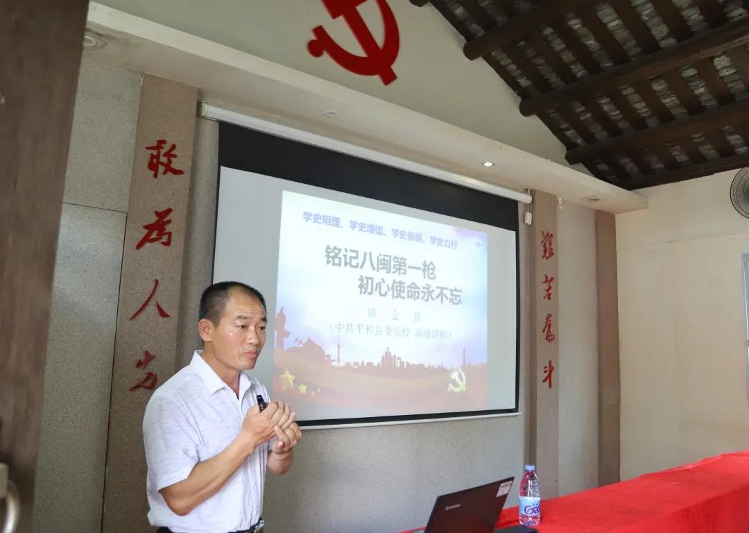 参观完平和暴动纪念馆后,县委党校高级讲师陈金营为我院师生讲授以“铭记八闽第一枪、初心使命永不忘”为主题的党课。在此次党课中,陈金营老师生动地向我们讲授了1928年3月8日中共平和临时县委领导的福建工农革命军独立第一团攻打县城的“平和暴动”,揭开了“福建工农自动夺取政权的第一幕”,发出了“土地革命在福建开始的信号”,向国民党反动派打响了八闽第一枪,生动诠释了“追求真理、坚定信念、不畏牺牲、勇于探索,艰苦奋斗”的“平和暴动”精神,让我们深入了解背后的红色文化故事。