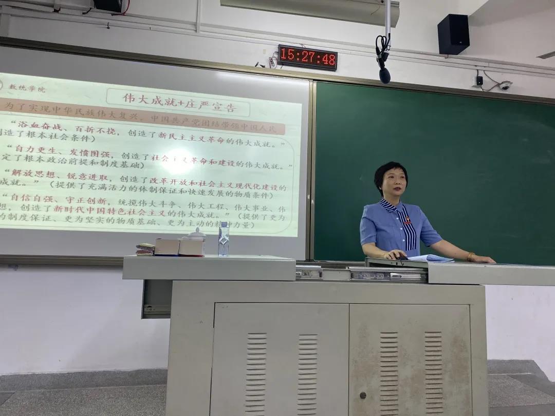 会上,陈晶莹书记首先带领大家回顾了党的百年光辉历程,她指出,党的百年奋斗历程和辉煌成就为新一代共产党人留下了宝贵精神财富,我们要弘扬光荣传统、赓续红色血脉。接着,她深刻阐述了习近平总书记“七一”重要讲话内容,并勉励大家要树立家国情怀,一心向党,永葆初心,要在党的奋斗历程中汲取经验,继续发扬建党精神,以寸心报华夏,将岁月赠山河,为实现中华民族伟大复兴的中国梦贡献出自己的绵薄之力。