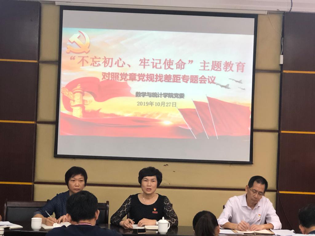 10月27日上午,我院在砺志楼114会议室召开“不忘初心、牢记使命”主题教育对照党章党规找差距专题会议, 全面深刻检视问题,对照初心和使命找差距。校主题教育巡回指导组第二组工会常务副主席陈惠卿组长、校友工作办公室秘书陈建漳、我院领导班子成员、纪检委员、各支部书记、系主任、学生党员代表参加了此次会议。会议由党委书记陈晶莹主持。