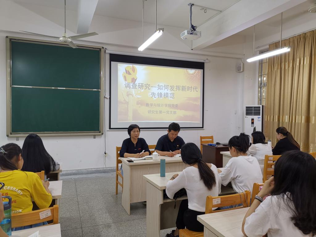 9月25日,数学与统计学院党委书记陈晶莹开展“不忘初心、牢记使命”主题教育调研活动,通过召开研究生党员座谈会,深入了解研究生的学习科研、日常生活,广泛听取学生党员对学院工作的意见与建议,并与学生党员探讨在新时代如何发挥党员先锋模范作用。学院全体研究生党员参加座谈会,座谈会由研究生支部书记张赫主持。