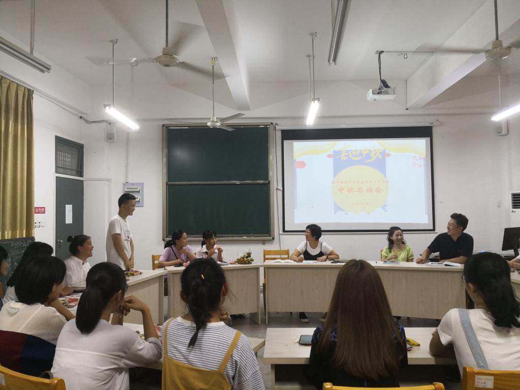 茶话会现场布置温馨漂亮,充满浓浓的节日气氛。师生共聚一堂,一起品尝月饼、瓜果,开怀畅谈。